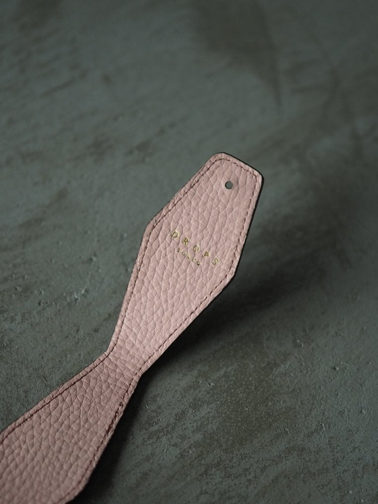The exterior is made of water-repellent aqua grain leather in chocolate, while the interior is made of pebbled shrink leather in cherry blossom pink.